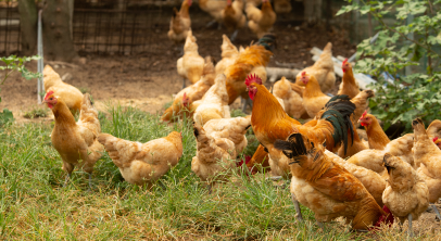 日本でもわずか6%しかいない、純国産鶏の中でも高級な「コーチン種」の鶏を育てています。農場では、平飼いでのびのびと健康に育てています。